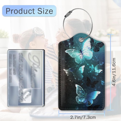 Luggage Tags for Suitcase,Glowing Butterfly Flying Luggage Tags of Set 2 Leather Identifiers Privacy Cover with Stainless Steel Loop for Women Men Travel Bag Suitcase
