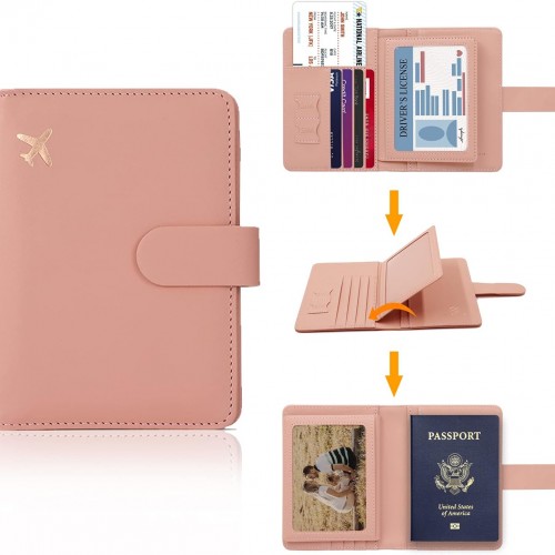 Melsbrinna Rfid Passport Holder for Travel women/Men, Cute Passport Wallet Rfid Blocking Card Slots, Rfid Passport Cover/CaseTravel Wallet, Passport Book Holder (1, Pink)