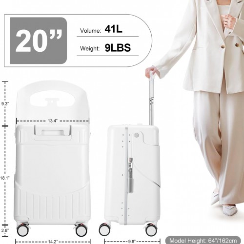 MRPLUM Ride On Luggage with Seat for Kids&Adults with Seat Belt,Hard Shell Lightweight Rolling Spinner Wheels Travel Luggage with TSA Lock,20 inch,White