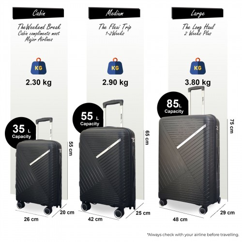 Nagoya Set of 5 Soft Shell Suitcase in Black