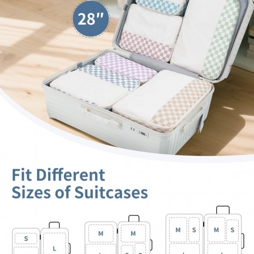 Narwey 7 Set Checkered Packing Cubes for Travel Carry on Suitcase Luggage Organizer Bags for Kids Women Men, Durable Packing Organizers Bag, Travel Essentials Accessories (Combined Checkerboard)