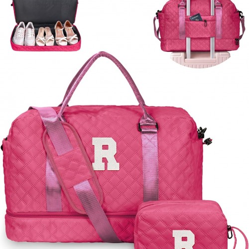 Overnight Bags for Women, Personalized Weekender Bag, Monogram Travel Bag for Women with Trolley Sleeve & Wet Pocket, Letter Travel Bag with Makeup Bag, Gift for Her(Letter D)