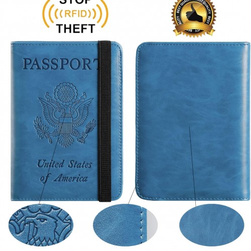 Passport Holder Cover Wallet Travel Essentials RFID Blocking Leather Card Case International Must Haves Travel Accessories for Women Men(101#Blue)