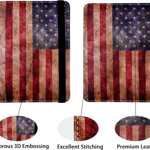 Passport Holder for Women and Men PU Leather Passport Cover for Travel (American Flag)