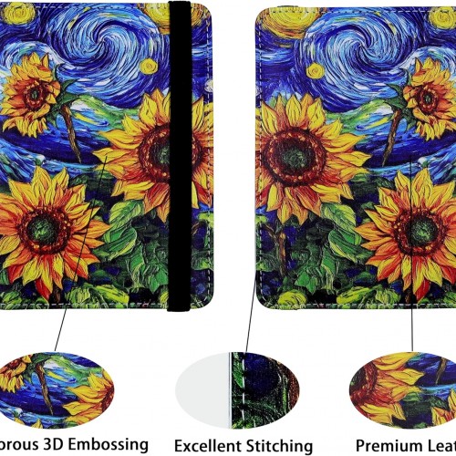Passport Holder for Women and Men PU Leather Passport Cover for Travel (Sunflower)