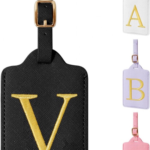 - ✈【Embroidered Initials Luggage Tag】Cute exquisite A-Z personalized luggage tag for suitcases with gold border glitter embroidered letter patch, the letters are made from carefully stitched gold-colored thread.Firmly sewn to the tag, you don’t have to worry about them falling off. Bright gold letters and vibrant luggage tag colors to help your suitcases be more easily recognizable at baggage claim.Monogram travel tags make your luggage more personal.