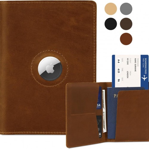Polare Full Grain Leather Passport Holder With YKK Zipper RFID Blocking Travel Document Organizer Ticket Holder Cover Case Holds 2 Passports (Coffee)
