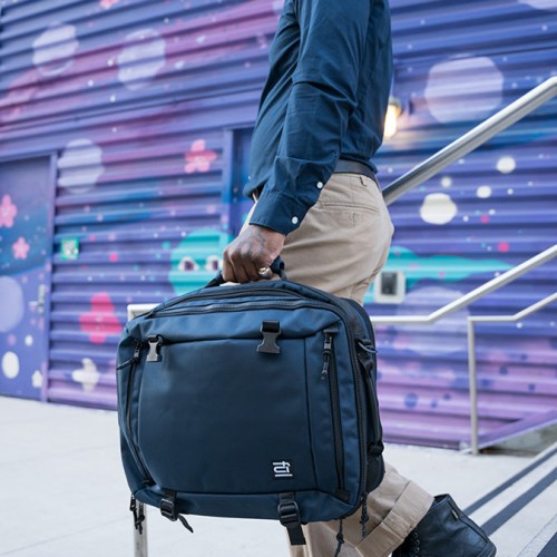 The stylish functionality of the Cruiser Travel navy blue backpack has two separate sections that can be packed like luggage or combined into one large compartment for access like a backpack. Constructed with 1680D Ballistic weave, the Cruiser travel backpack is durable, functional, and stylish. The shoulder harness straps can zip away to check this versatile backpack as a luggage piece or as a travel bag. The dedicated tech compartment can be accessed regardless of how the bag is worn.