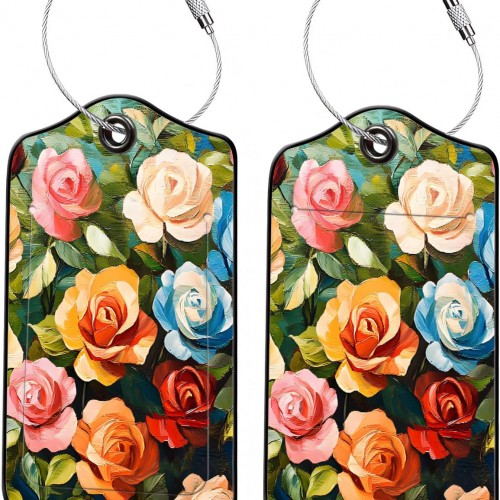 Stainless Luggage Tags for Suitcases: Metal Personalized Luggage Tags and Bags with Customizable Texts (Rainbow)