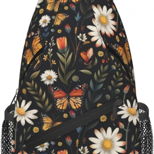 SUPLUCHOM Sling Bag Vintage Butterfly Daisy Leaf Hiking Daypack Crossbody Shoulder Backpack Travel Chest Pack for Men Women