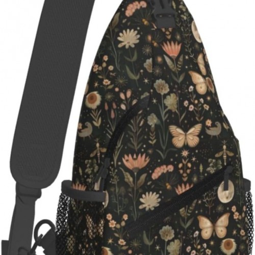 SUPLUCHOM Sling Bag Vintage Butterfly Moon Flower Hiking Daypack Crossbody Shoulder Backpack Travel Chest Pack for Men Women