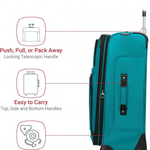SwissGear Sion Softside Expandable Luggage – Medium Checked Suitcase with 360 Degree Wheels & Retractable Handle – 25 Inch, Perfect for 1-7 Night Trips – Teal