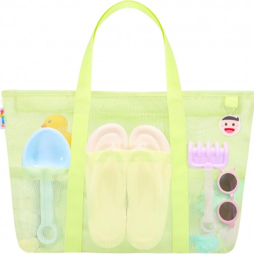 Tagitary Mesh Beach Bag with Zipper Large Beach Tote Waterproof Sandproof with 8 Pockets for Toys Pool Bag Beach Accessories