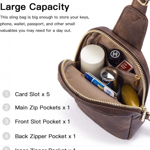 Telena Small Sling Bag for Women Leather Crossbody Fanny Packs Chest Bag for Women