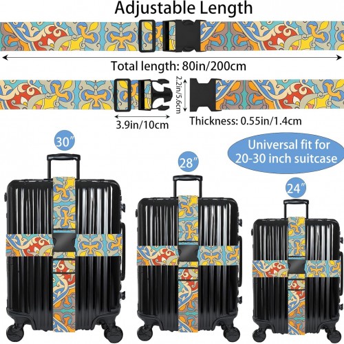 Totem Flowers Luggage Straps for Suitcases, Adjustable Luggage Travel Belt to Keep Luggage Security While Travel, Strong Polyester Fabric, Easy-to-Recognize Cute Pattern Travel Essentials, 2 Pack