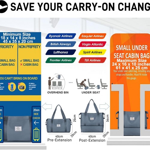 Travel Duffel Bag, Sports Tote Gym Bag, Shoulder Weekender Overnight Bag for Women