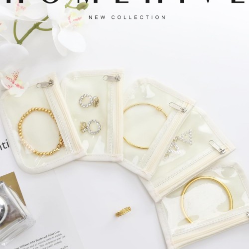 Travel Jewelry Bags, 10Pcs Clear Velvet Zipper Travel Jewelry Organizer, Portable Anti Tarnish Jewelry Storage Pouch Bag Gift for Women Girls, 10Pcs Bags