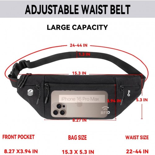 Travel Money Belt for Men and Women hidden slim passport holder – travel wallet with RFID blocking under clothes to protect Cash, Credit Cards and Documents (BLACK)
