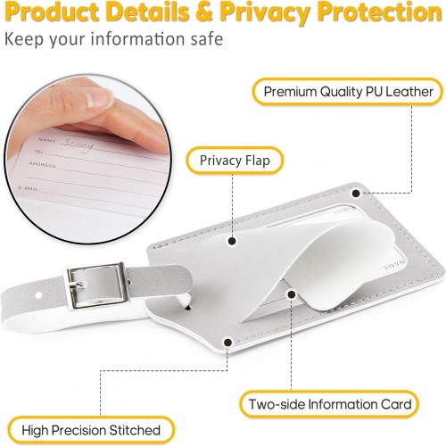 Travelambo Luggage Tags for Suitcases PU Leather Travel Tags Bag Tags Privacy Protection Travel Essentials