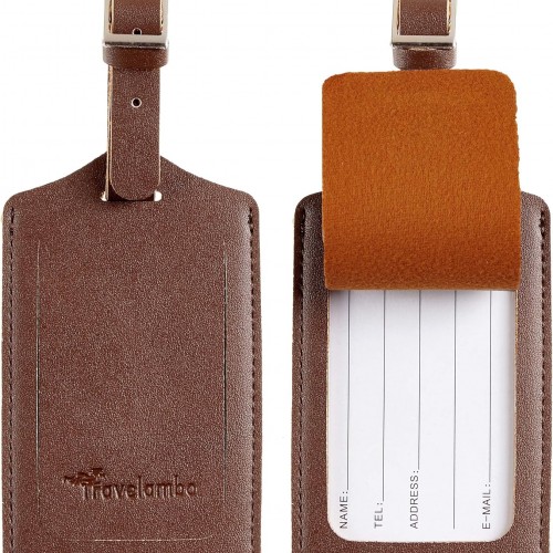 Travelambo Luggage Tags for Suitcases PU Leather Travel Tags Bag Tags Privacy Protection Travel Essentials