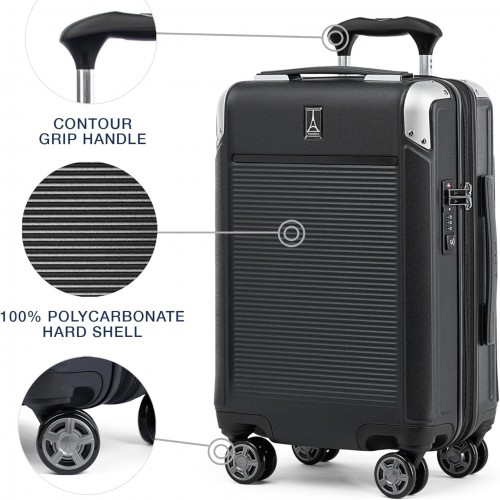 Travelpro Platinum Elite Hardside Expandable Carry on Luggage, 8 Wheel Spinner, TSA Lock, Hard Shell Polycarbonate Suitcase, Shadow Black, Compact Carry on 20-Inch