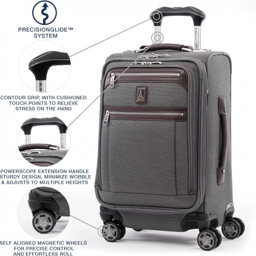 Travelpro Platinum Elite Softside Expandable Carry on Luggage, 8 Wheel Spinner Suitcase, USB Port, Laptop and Tablet Sleeves, Men and Women, Vintage Grey, Carry On 20-Inch