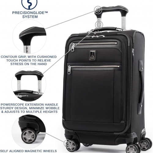 Travelpro Platinum Elite Softside Expandable Carry on Luggage, 8 Wheel Spinner Suitcase, USB Port, Suiter, Men and Women, Shadow Black, Carry On 21-Inch