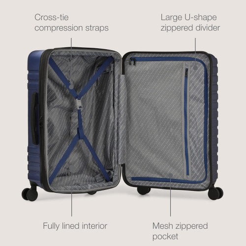 U.S. Traveler Boren Polycarbonate Hardside Rugged Travel Suitcase Luggage with 8 Spinner Wheels, Aluminum Handle, Navy, 3-Piece Set, USB Port in Carry-On