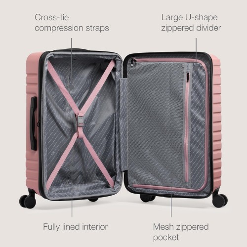 U.S. Traveler Boren Polycarbonate Hardside Rugged Travel Suitcase Luggage with 8 Spinner Wheels, Aluminum Handle, Pink, Checked-Large 30-Inch