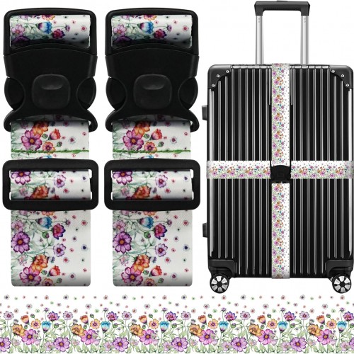 Untethered Ultimate Travel Set: 4 Premium Luggage Straps and 4 Silicone Tags – Secure & Identify Your Bags with Ease (Black + Tags)