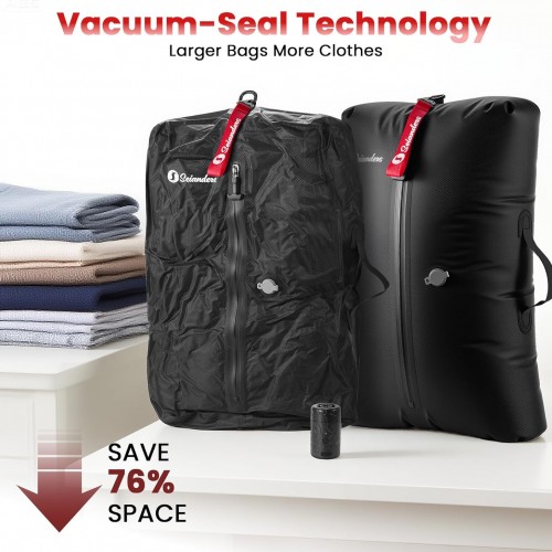 Vacuum Bags for Travel Luggage (2PCS + Wireless Pump), Vacuum Clothing Compression Bag with Adjustable Shoulder Strap, 50.6L Large Capacity, IP67 Waterproof, Reusable for Carry-on Luggage & Backpack