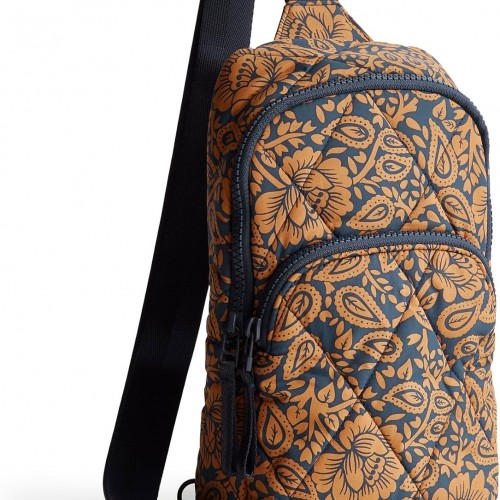 Vera Bradley Women’s Lorman Sling Backpack-Featherweight Bag, Lotus Montage Roasted Pecan, One Size
