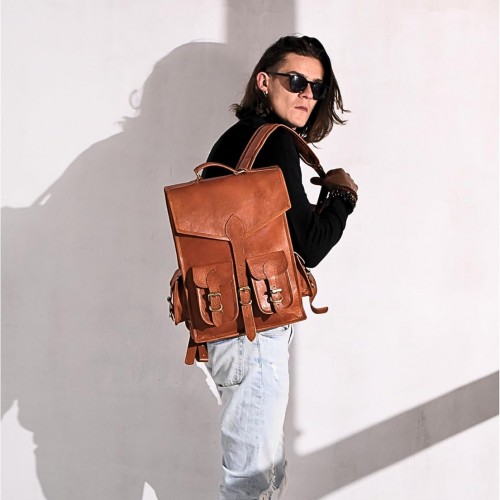 Discover the Vintage Leather Backpack Rucksack, expertly crafted from full-grain, eco-friendly vegetable-tanned goat leather.