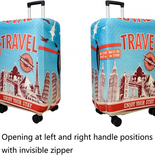WUJIAONIAO Travel Luggage Cover Baggage Suitcase Cover Protector Skins 18-32 Inch (Tourist Attraction A28, M (for 22-24 inch luggage))