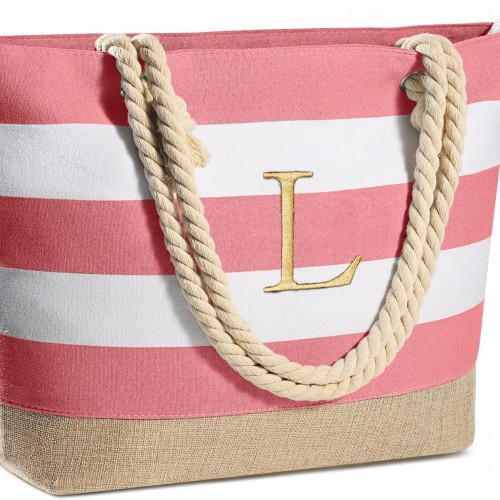 YOOLIFE Initial Canvas Waterproof Beach Tote Bag Zipper Personalized Gifts for Women Her Birthday Travel Beach Essential